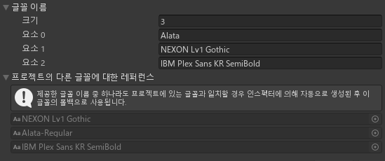 로컬라이징 에셋을 사용할 때 별도로 언어별 폰트를 지정해줄 필요 없이 이 방법을 사용하면 매우 간편하게 다국어를 지원할 수 있다.